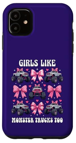 Girls Like Monster Trucks Too Coquette avec nœuds Roses et cœurs Coque pour iPhone 11