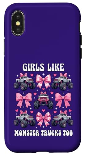Girls Like Monster Trucks Too Coquette avec nœuds Roses et cœurs Coque pour iPhone XS Max