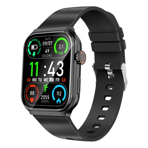 Montre Connectée Écran Tactile 1,85' Santé Notifications 10 Jours Akashi Noir