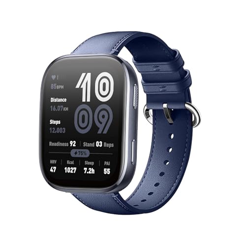GIOPUEY 22mm Bracelet Compatible avec Amazfit Bip 6/Bip 5/5 Unity/Balance/Balance 2/Cheetah Round/Cheetah Pro/GTR 4/3/3 Pro, Cuir véritable Sangle Montre Bracelet [Résistant à l'usure] - Navy Blue