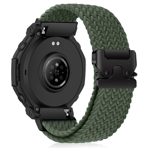 HinZann 22mm Bracelet Pour Amazfit T-Rex 3 Pro 48mm/Bip 6/5/5 Unity/Balance 2/Balance, Nylon Élastiques Montre de Rechange, Tressé Bracelet Pour Amazfit Cheetah/Cheetah Pro/GTR 4/3 Pro- Vert