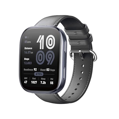 GIOPUEY 22mm Bracelet Compatible avec Amazfit Bip 6/Bip 5/5 Unity/Balance/Balance 2/Cheetah Round/Cheetah Pro/GTR 4/3/3 Pro, Cuir véritable Sangle Montre Bracelet [Résistant à l'usure] - Grey