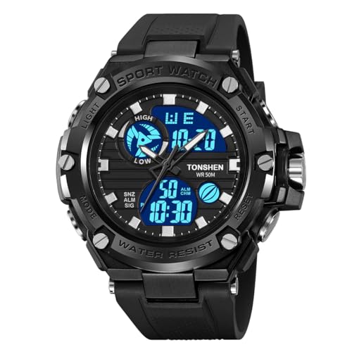 TONSHEN Homme et Femme 50M Etanche Analogique Digitale Sport Montre Analogique Quartz LED Double Temps Plastique Caisse et Caoutchouc Ruban Montres Bracelet (Homme)