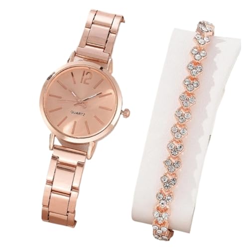 Montre Enfant Coffret 2 pièces Montre et Bracelet for Femme, Montre analogique Classique en Acier Inoxydable avec Cristaux, Cadeau d'anniversaire Digitale(Rose Gold,A)