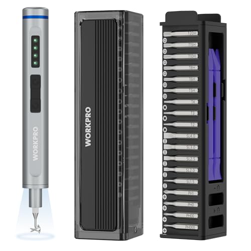 WORKPRO Tournevis Électrique de Précision 42 en 1, Set de Tournevis de Précision avec 36 Embouts S2, Boîte Magnétique, Recharge Type-C, pour Réparation de Téléphone, Montre, Appareil Photo
