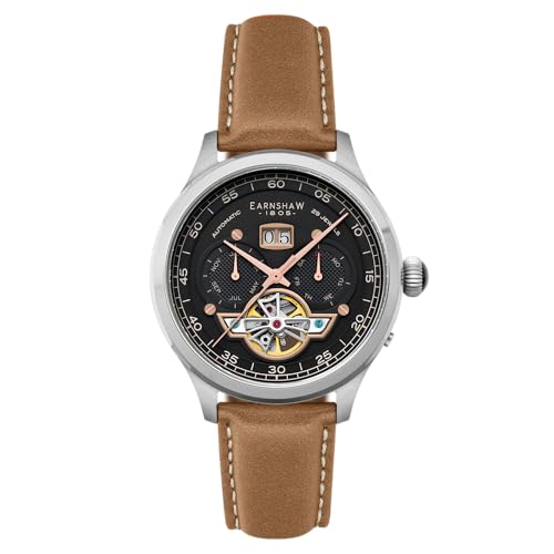 Thomas Earnshaw Baron ES-8187 Montre automatique avec bracelet en cuir pour homme 43 mm, Abbey Black