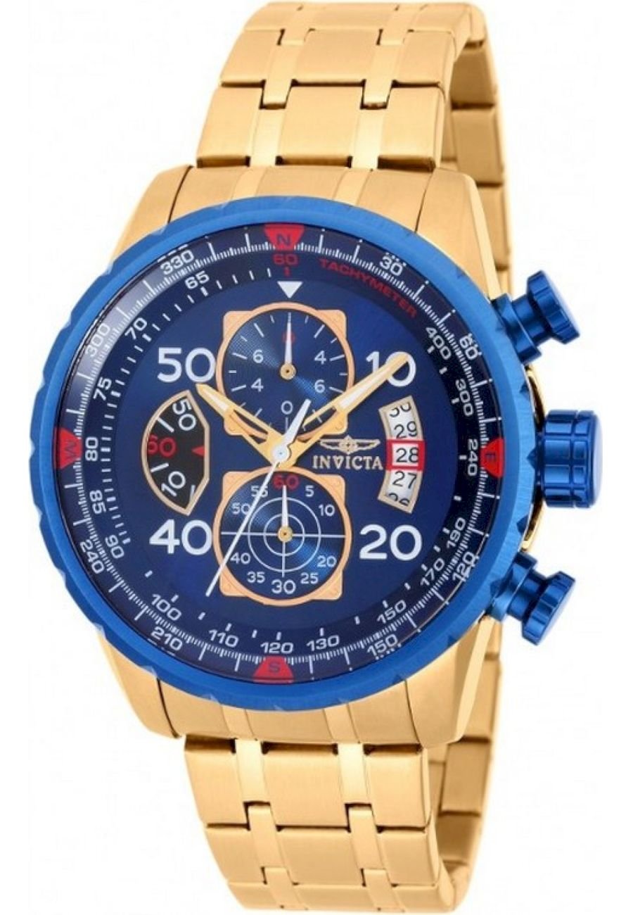 Invicta Aviator 22525 Montre Homme - Entanche - Analogique - mouvement à quartz - acier inoxydable avec cadran bleu - 49mm