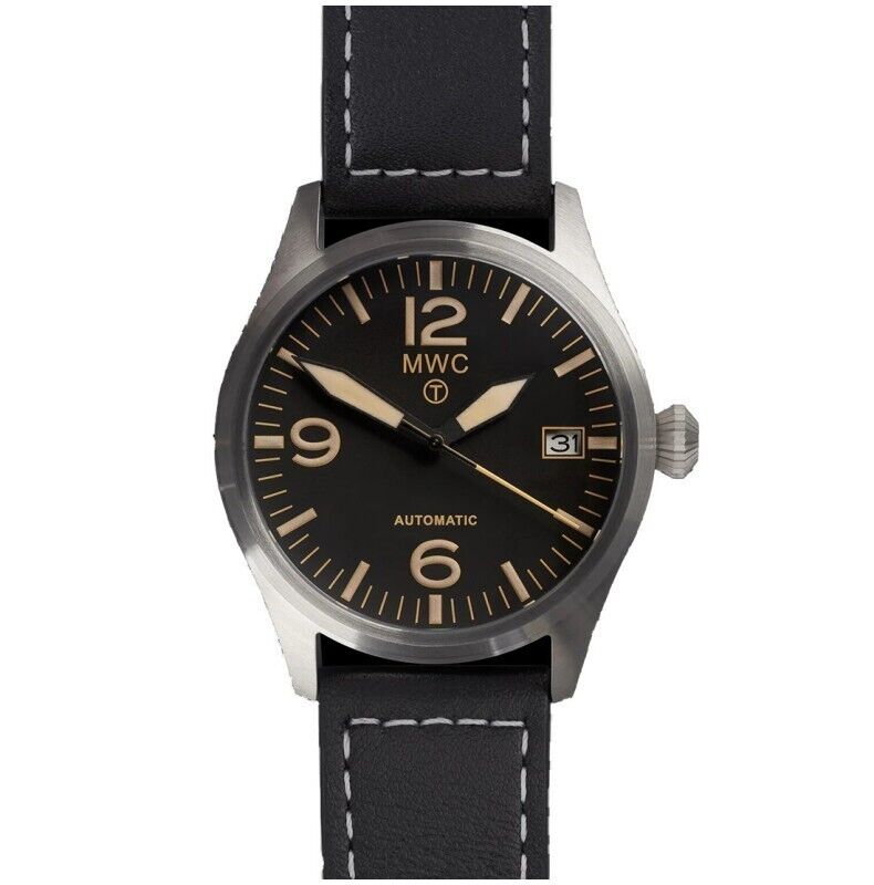 MWC Classic 40 Aviator Automatique Acier Noir Cuir Date Saphir Montre Homme