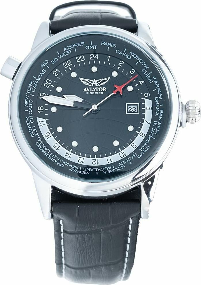 Aviator World Cities 3 Montre à quartz pour homme – Collection aviateurs de vol classique – Bracelet en cuir véritable noir 3 ATM