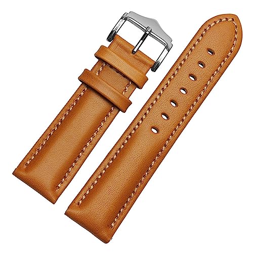 LQXHZ Bracelet en cuir véritable bracelet de montre fait main 18 20mm 22mm bracelet de montre couleur bleu vert bracelet de montre-bracelet montres-bracelets(Orange silver buckle,22mm)