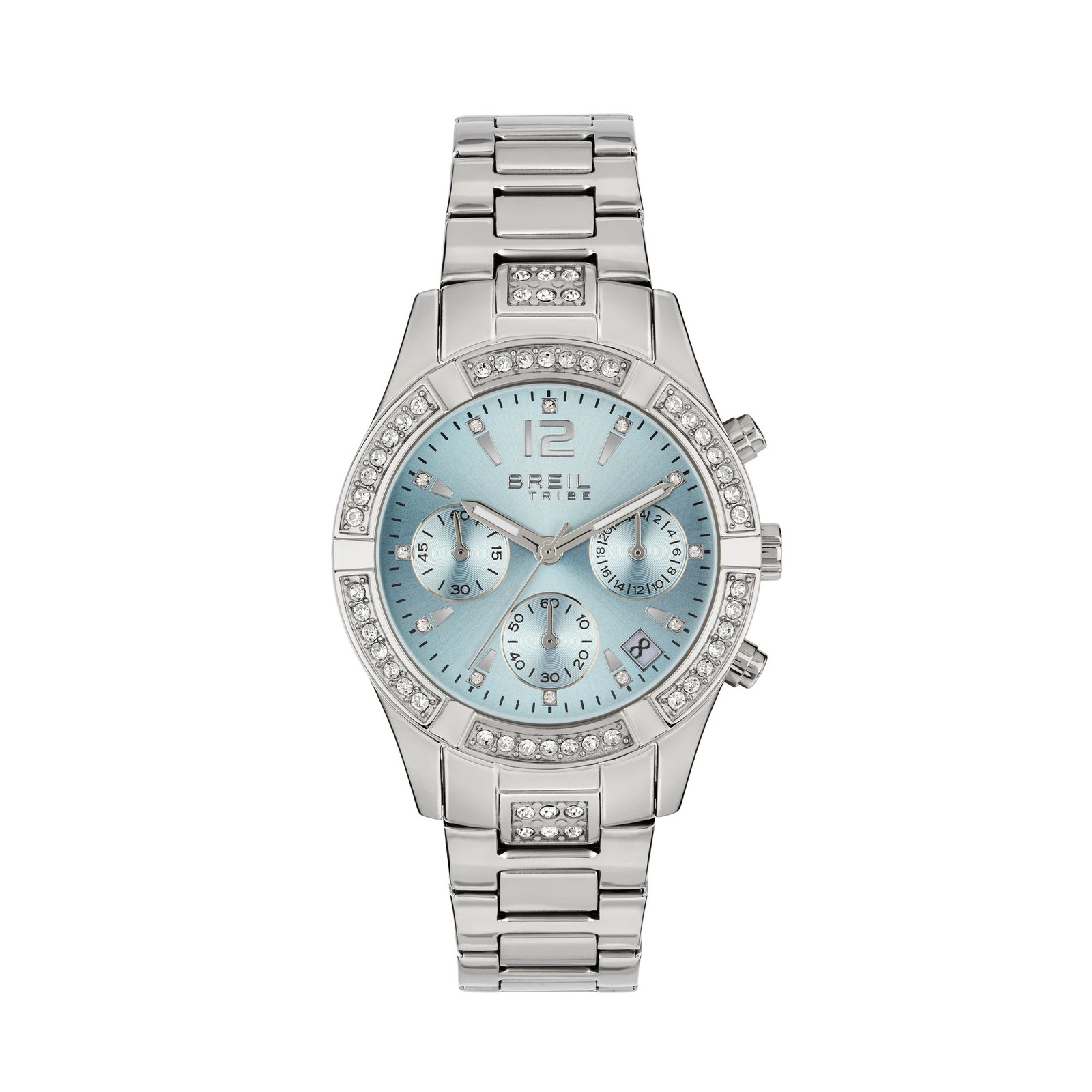 Montre Femme BREIL Tribe C'EST CHIC EW0725 Acier Chrono Bleu Clair Swarovski