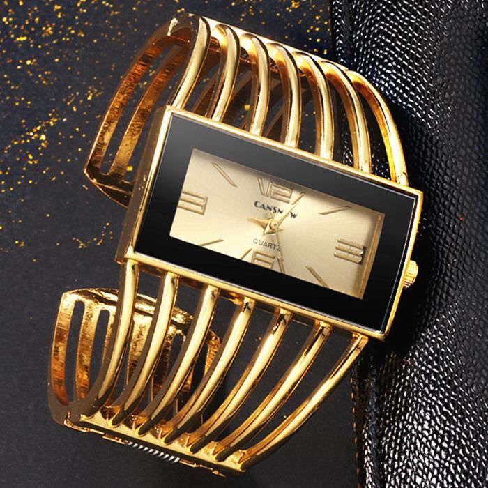 JewelryWe Montre pour Femme à Quartz - Montre à Cadran Carré Numérique et Bracelet Extensible (Noir)