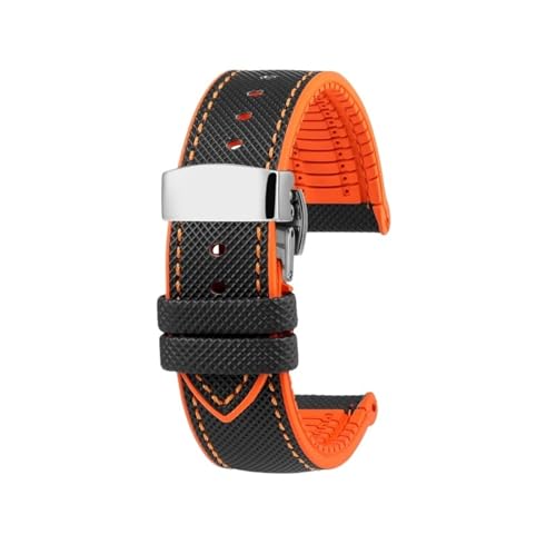Bracelet de montre en caoutchouc fluoré 20mm 22mm Compatible avec Huawei/Citizen/Seiko/Casio(Orange-silver,22mm)