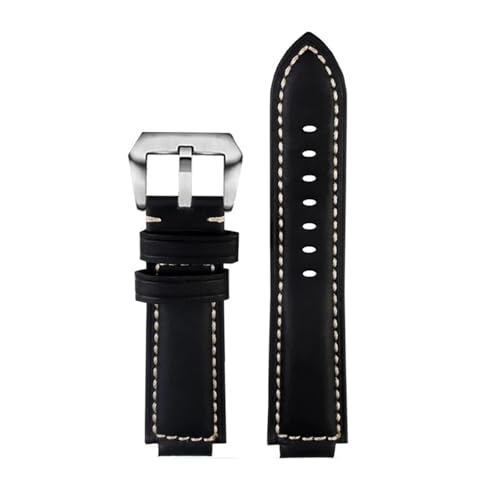 SEQLTWFC Bracelet de montre rétro en cuir véritable for homme, 20 mm, 22 mm, 24 mm, 26 mm, vert givré, marron, compatible avec les bracelets de montre Panerai et Casio.(Retro black-steel,24mm)