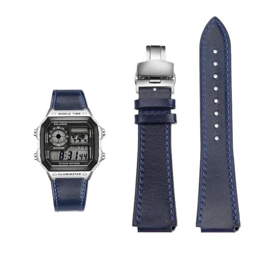 AJASMKLX Bracelet de montre rétro en cuir for hommes, adapté for Casio Fit For g-shock AE-1200WH/1300/1000/A159 A158 A168, boucle en acier inoxydable(Brown-steel buckle)