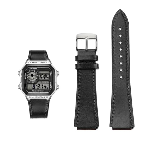 NBCNZCTSAS Bracelet de montre rétro en cuir for hommes, adapté for Casio Fit For g-shock AE-1200WH/1300/1000/A159 A158 A168, boucle en acier inoxydable(Black-steel buckle)