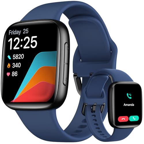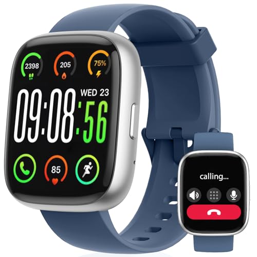 Montre Connectée Homme, 1,85" Femme Smartwatch pour Samsung iPhone Android, Alexa intégrée 3ATM 100+ Modes Sportifs Moniteur de SpO2/Sommeil/Fréquence Cardiaque/Podometre/Calories Bleu foncé