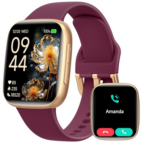 Montre Connectée Femme, 1.85" Écran Tactile avec Appel Bluetooth & Alexa Intégrée, 3ATM Étanche Smartwatch - Moniteur Cardiaque/SpO2/Sommeil, Podomètre & Calories, Compatible Samsung iPhone Android