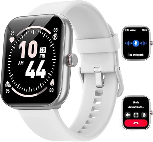 Montre Connectée Homme Femme pour Samsung,iPhone,Android,1,8" Montre Connectée Femme avec Appel Bluetooth,Voix de l'IA,Alexa intégrée,Smartwatch Moniteur de SpO2,Sommeil,Podometre,Calories,IP68-Blanc