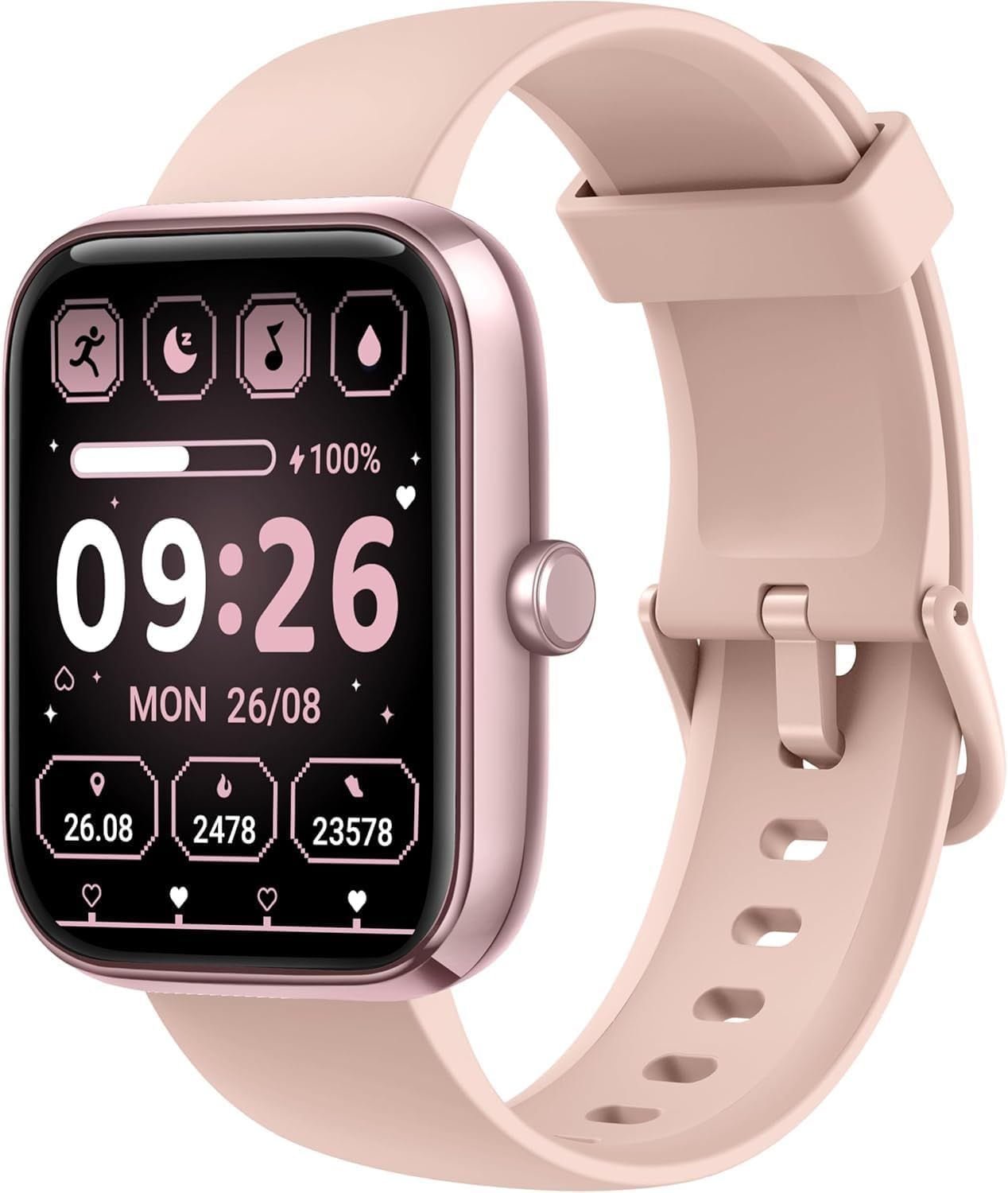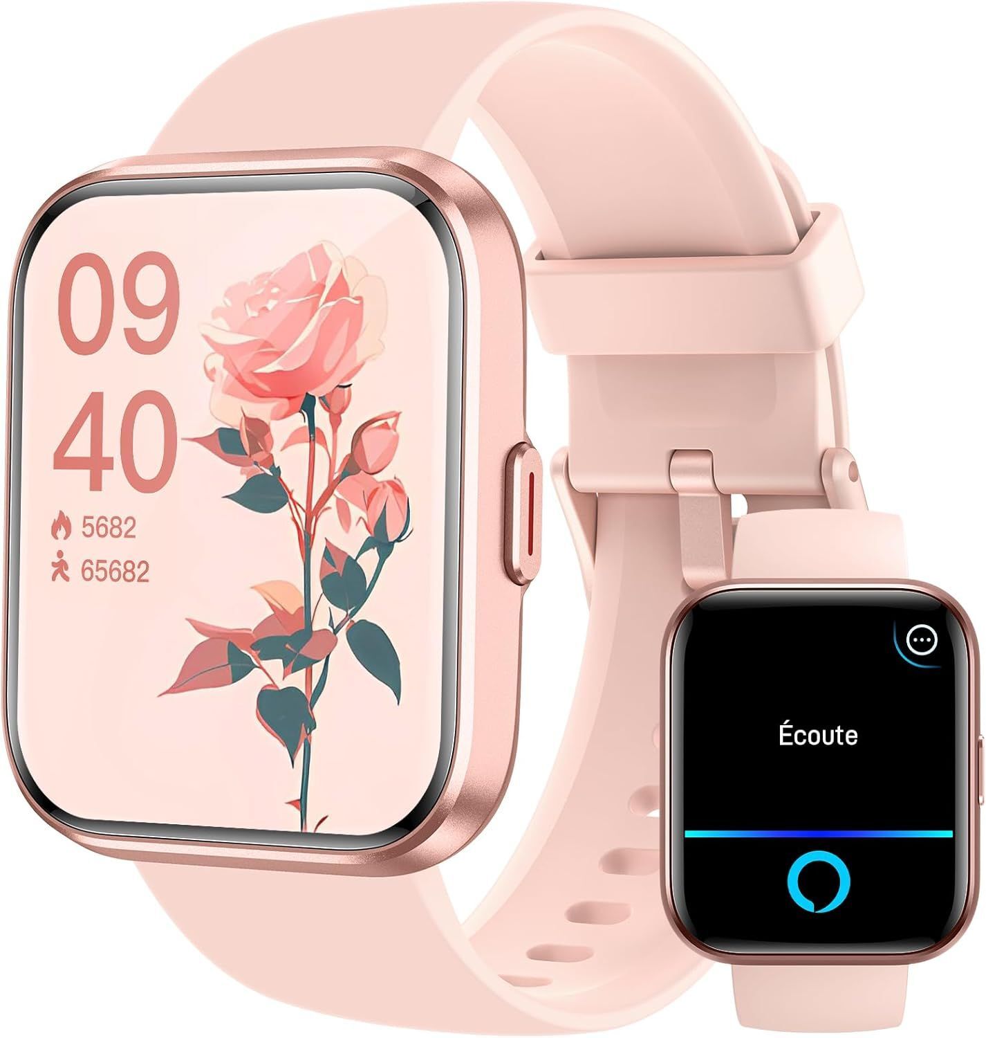 Montre Connectée Femme, 1,83" Smartwatch Intégré Alexa avec Appel Bluetooth, IP68 Étanche, 100+ Sports, Fréquence Cardiaque, SpO2, Pression, Podomètre, Sommeil, Fitness Tracker pour Android iOS Rose