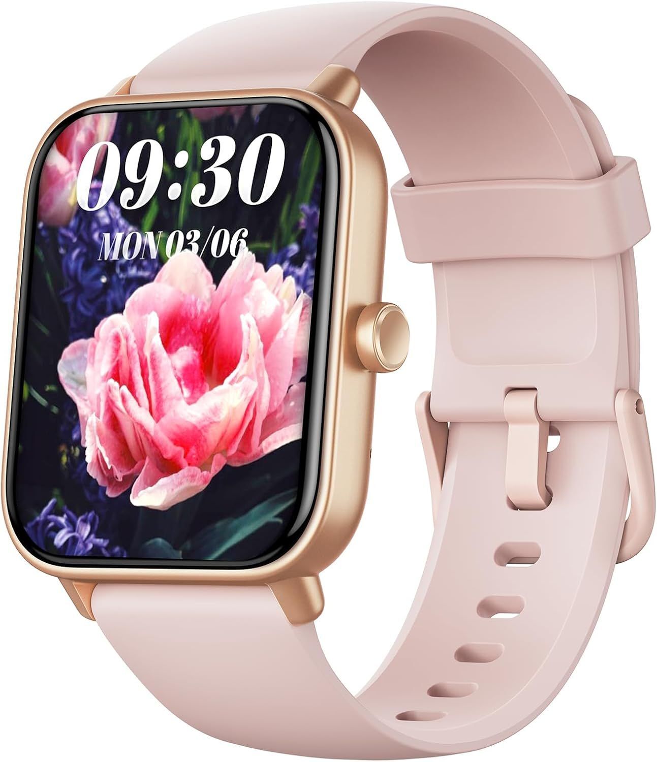 Montre connectée femme avec Appel Bluetooth fréquence cardiaque -Smartwatch femme etanche avec Podometre Alexa suivi sommeil-Montre intelligente femme watch Fitness sport pour Android ios(Rose)