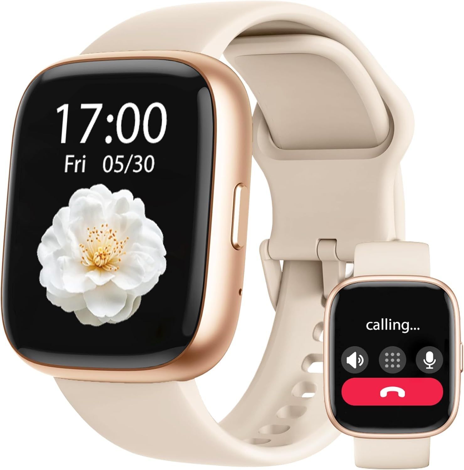 Montre Connectée Femme avec Appels Bluetooth, 1,7" Montre Connectée Moniteur de Fréquence Cardiaque/SpO2/Sommeil/Alexa Intégré, Montre Intelligente 60 Modes Sportifs Notifications pour Android iOS