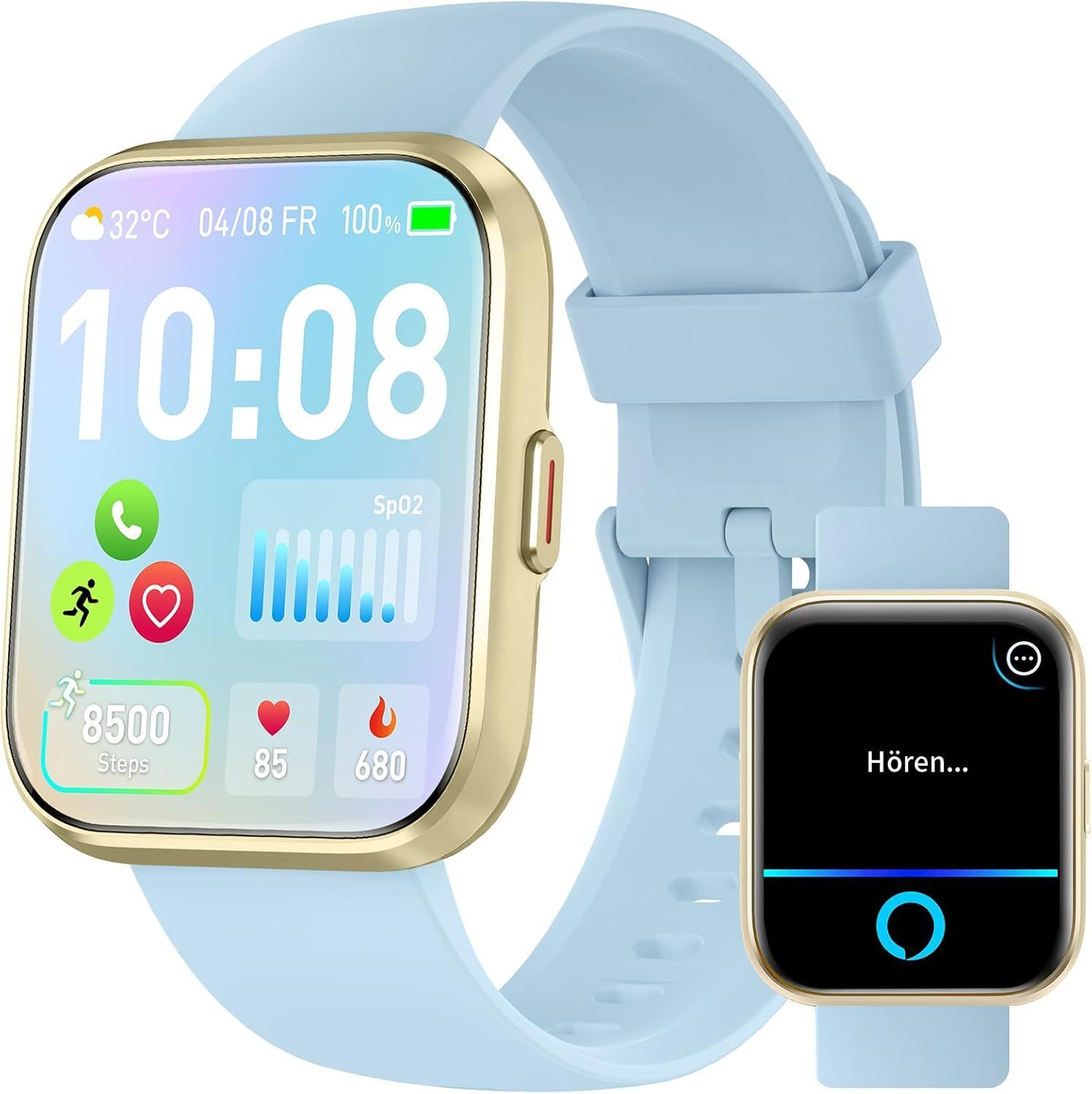 TOOBUR Montre Connectée Femme avec Alexa et Podometre, 1,8" Smartwatch Motre Sport avec 100 Sports, Repondre Appel et cardiofrequencemetre, Étanche IP68 Natation, Compatible avec iOS et Android