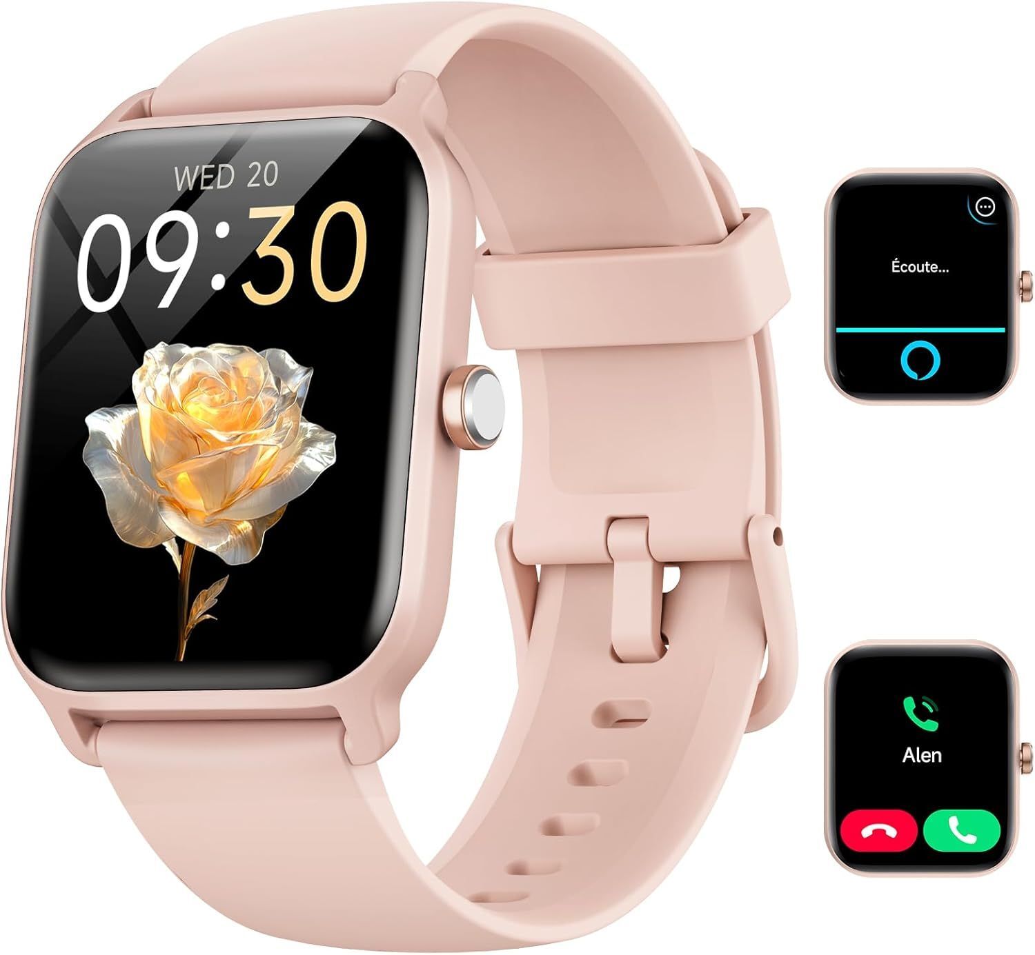 Montre Connectée Femme Homme Appel Bluetooth, 1.8¿ Smartwatch Avec Alexa Intégré, Moniteur De Sommeil Cardiofréquencemètre Spo2, Etanche Ip68 Montre Avec 100 Sportifs Pour Android Ios Cadeaux, Rose