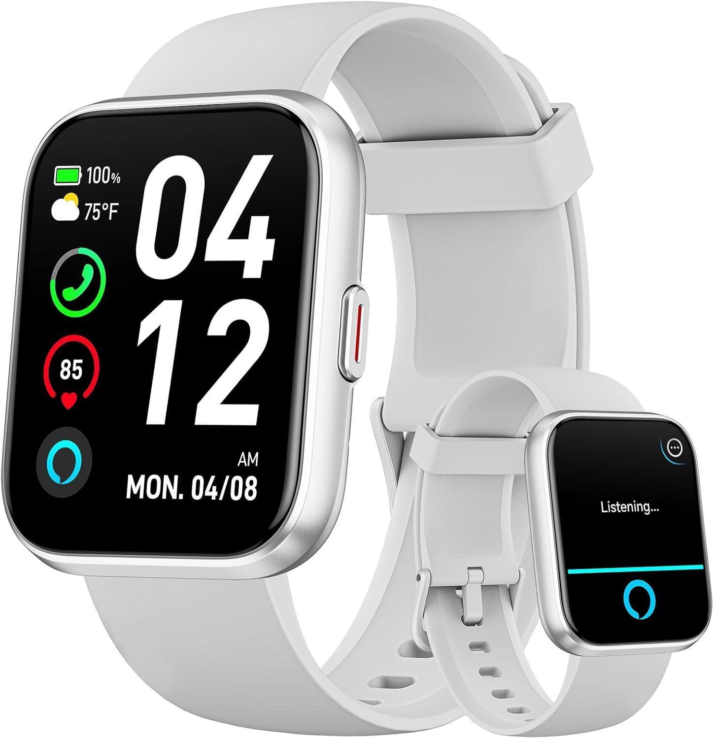 Montre Connectée Femme, 1,85" Homme Smartwatch pour Samsung iPhone Android, Alexa intégrée 3ATM 100+ Modes Sportifs Moniteur de SpO2/Sommeil/Fréquence Cardiaque/Podometre/Calories Blanc