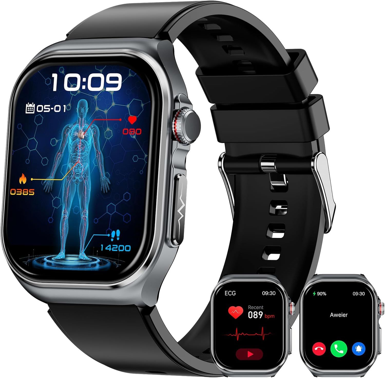 Montre Connectée - ECG+PPG, Appels Bluetooth, Noir
