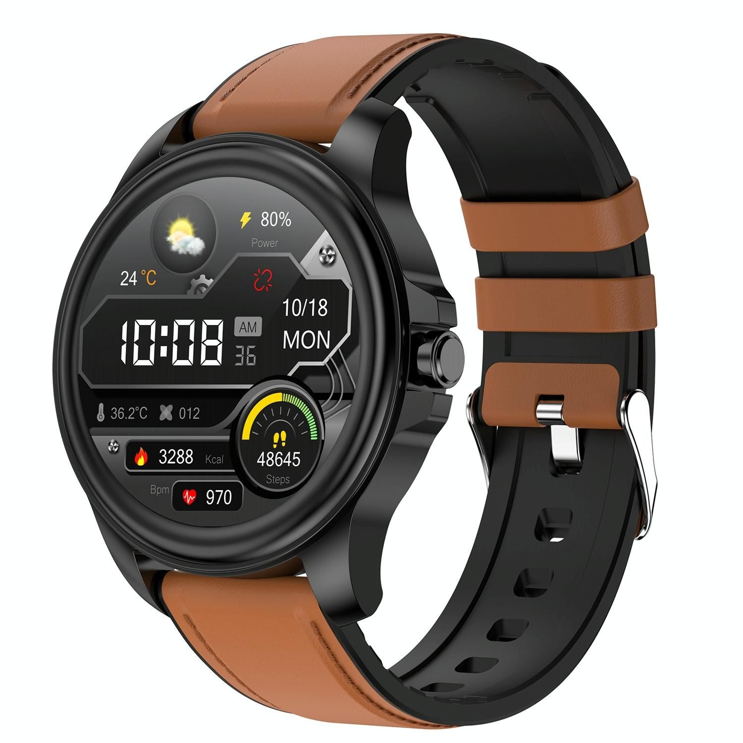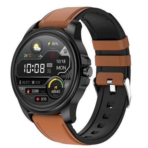 Montre Connectée Avec Ecg, Analyse De La Composition Corporelle, Analyse De La Composition Sanguine (Acide Urique, Lipides Sanguins) Bracelet En Cuir Noir Et Marron