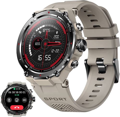 Montre Connectée Homme XTRADITECH Militaire Rigide Appel Bluetooth Assistant Vocal Intelligent Gros Bouton Codeur Rotatif – Gris