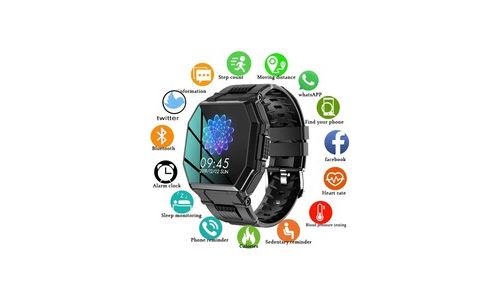 Montre connectée de sport militaire pour hommes, plein écran tactile, moniteur de pression artérielle,de fréquence cardiaque- noir