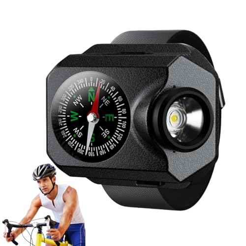 SVCEQZE Lampe de poche de poignet – Lampe de poche mains avec fonction boussole | Montre de poche rechargeable, 5 variations, lumière extérieure étanche pour vélo, course à pied, camping