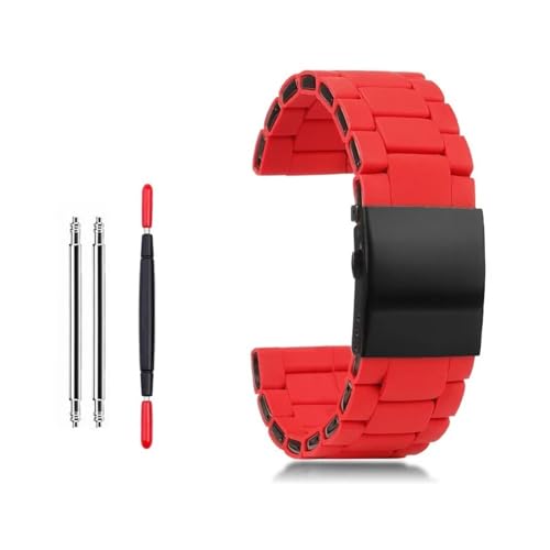 WTNZBAEM Bracelets de montre respirants en acier avec revêtement silicone, compatibles Diesel RED MAGIC Black Warrior Aerospace Friday, bracelets Panerai 24, 26 et 28 mm(Red,24mm)