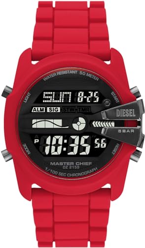 Diesel Master Chief Montre pour Homme, Mouvement Digital avec Bracelet en Silicone, Acier Inoxydable ou Cuir, Rouge et Noir, 44mm