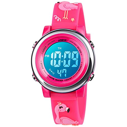 Bigmeda Montre Enfant Numérique Sport 30M Etanche Multifonction Électronique Montres 7 Couleur LED Rétro Eclairage pour 3 Ans à 12 Ans Enfants Fille Garçon (Licorne Rose Clair)