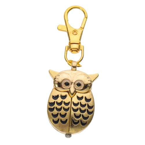 Healeved Montre de Poche Hibou Décorative Dorée Porte-clés en Alliage Quartz Fonctionnant sur Piles Présent Femme Usage Quotidien Compacte et Originale