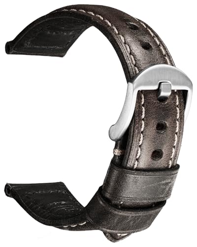 REZERO Bracelet de Montre, Sangle de Montre en Cuir Véritable Cirée à l’Huile Vintage, Épais et Léger Lanière de Montre de Remplacement pour Homme, Femme 18mm 19mm 20mm 21mm 22mm 23mm 24mm 26mm