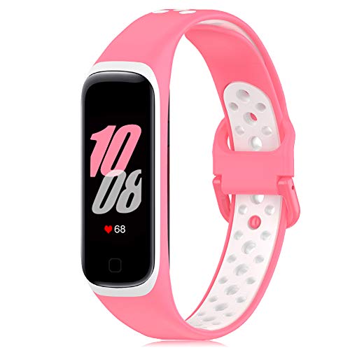 Wownadu Bracelet Compatible pour Samsung Galaxy Fit 2 R220, Rose Blanc Silicone Sport Remplacement Sangle Bande Accessoires Réglable pour Femme Homme (Sans Montre)