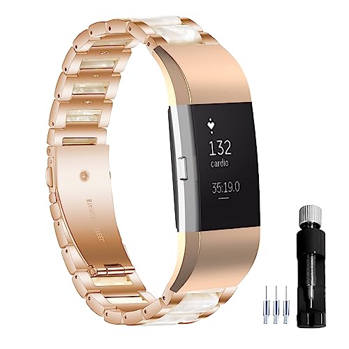 Gheper Bracelet de montre en résine et acier inoxydable compatible avec Fitbit Charge 2/Charge 2HR Smartwatch Bracelet de rechange en métal pour homme et femme
