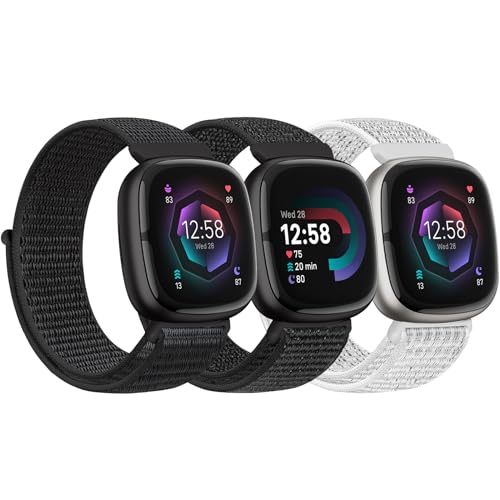 Bcuckood Bracelet en nylon compatible avec Fitbit Versa 4 / Sense 2 / Versa 3 / Sense - Bracelet de montre en nylon souple et respirant - Bracelet de rechange pour homme et femme
