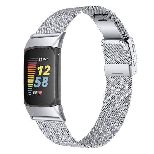 Gimuk Bracelets compatibles avec Fitbit Charge 6/5, bracelet de montre de rechange réglable en maille métallique en acier inoxydable pour femme/homme, Small/Large, Métal, Pas de gemme
