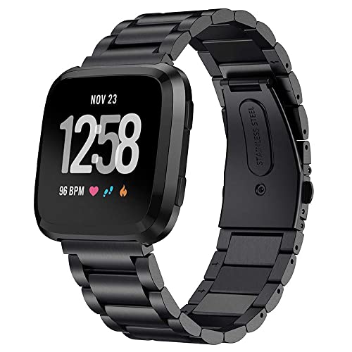 KOMI Bracelet de montre compatible avec Fitbit Versa 2/Versa - Bracelet de fitness en acier inoxydable pour homme et femme (noir)