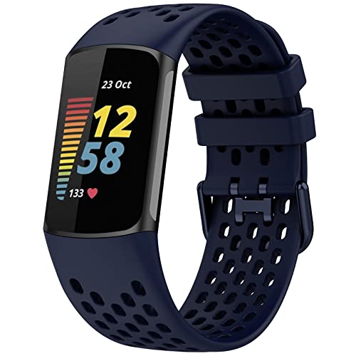 TopPerfekt Bracelet de Rechange pour Montre Fitbit Charge 6, Bracelet Réglable Sport en Silicone Souple pour Traqueur D'activité Charge 5 pour Homme et Femme (Bleu Marine)