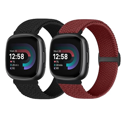 Vodtian Bracelet tressé compatible avec Fitbit Versa 4/Versa 3/Sense 2/Sense pour homme et femme - Bracelet de montre élastique réglable en nylon Solo Loop pour Fitbit Versa 4/Versa 3/Sense 2/Sense