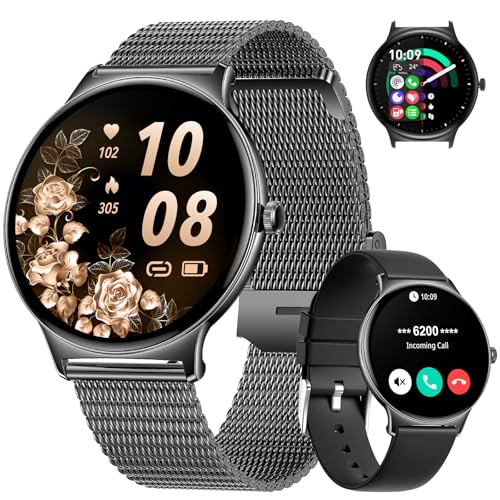 HIRREO Montre Connectée Femme avec Appel Bluetooth pour Android iOS,1,43'' AMOLED Fitness Tracker avec 100+ Modes Sportifs,Podomètre,IP68 étanche Sport Smartwatch Femme Noir