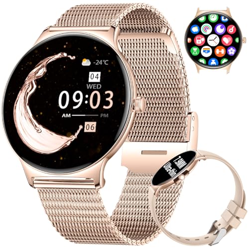 CIVO Montre Connectée Femme Fitness: Montre Sport Femme avec Appel Bluetooth Podometre pour Android iOS - Smart Watch Ronde Etanche Or Rose