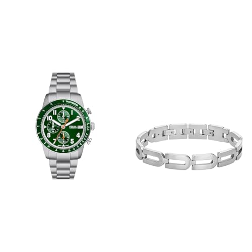 Fossil Montre Homme Sport Tourer et Bracelet Heritage, Acier Inoxydable Argent, Set
