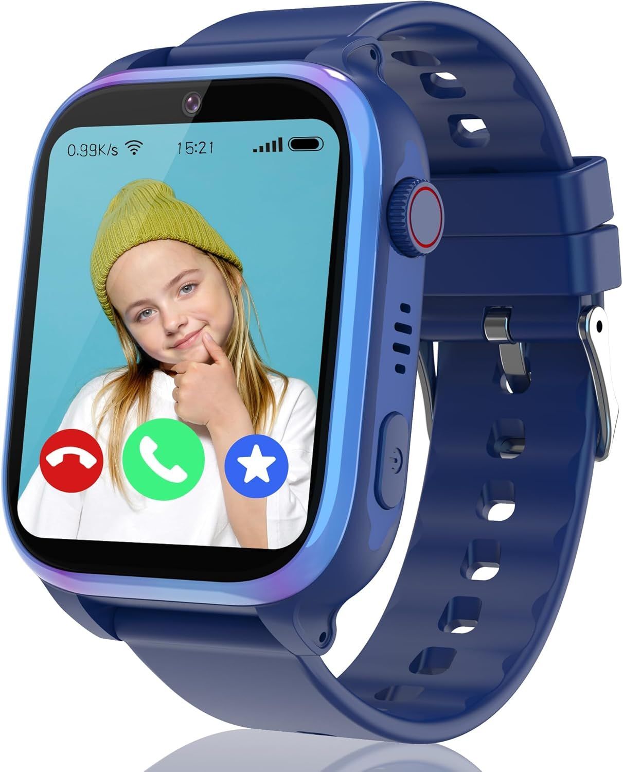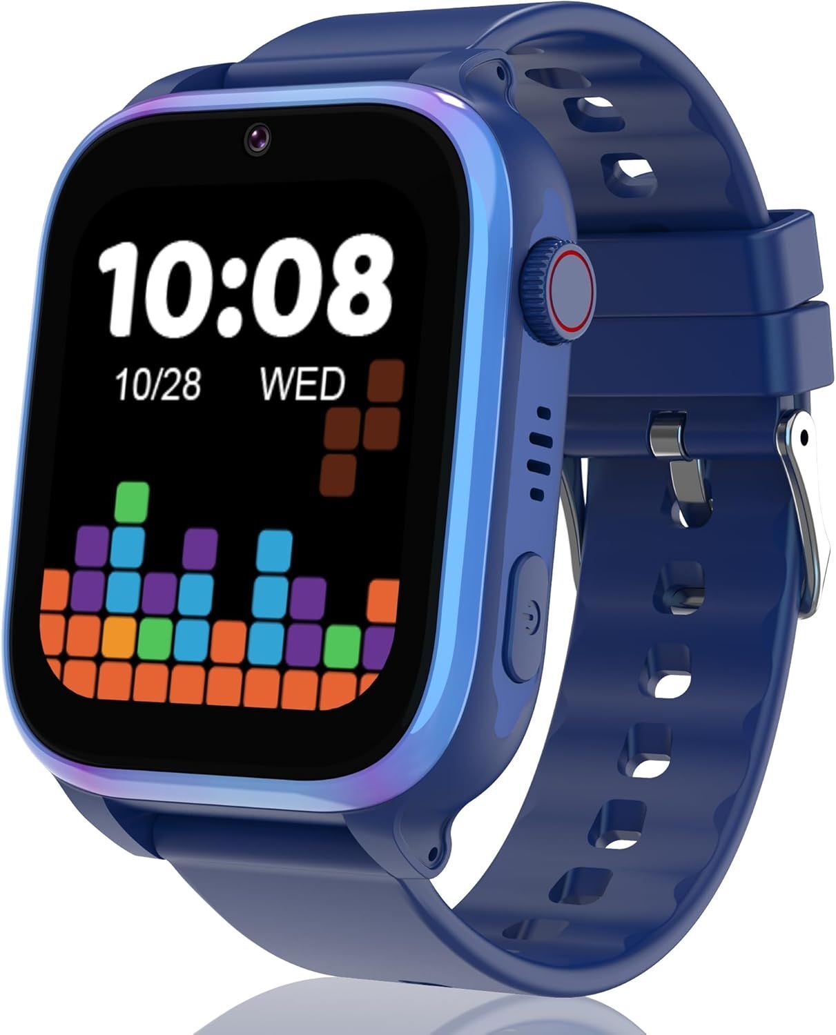 Montre Connectée Enfants GPS, 4G Smartwatch Téléphone pour Filles et Garçons avec Appel, Vidéo, SOS, Chat, Mode Classe Podomètre, Jeux, Réveil, Montre Intelligente Enfant 4 à 12 Ans Cadeau, Bleu foncé